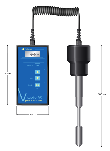 Wiskozymetr przenośny do przemysłowych zastosowań. W przeciwieństwie do innych lepkościomierzy, na pomiar wiskozymetrem Viscolite nie ma wpływu wielkość naczyń, w którym dokonujemy pomiaru płynu. Precyzyjne i szybkie oznaczanie lepkości może być wykonane zarówno w probówce, jak i w pełnym zbiorniku.