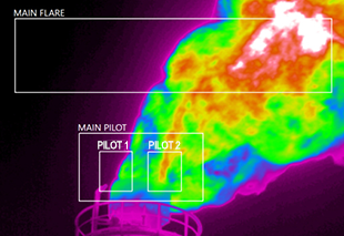 Kamera termowizyjna tworzy obraz wizualny, ale wykrywa również promieniowanie podczerwone emitowane przez płomień. Oznacza to, że kamera widzi płomień, niezależnie od tego, czy jest kolorowy, czy przezroczysty, i niezależnie od pogody.
