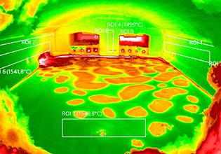 Kamera termowizyjna mierzy temperaturę w zakresie 1000 ... 1800 °C.